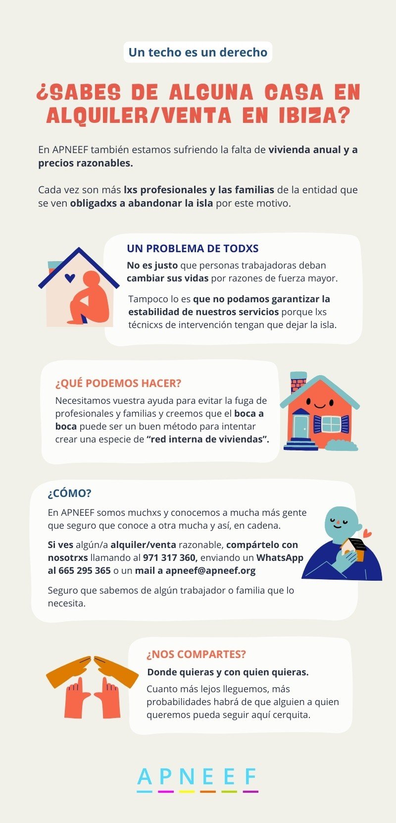 Con el fin de ayudarnos entre nosotros/as, os animamos a enviarnos cualquier oferta de alquiler o venta de vivienda razonable en Ibiza y Formentera.